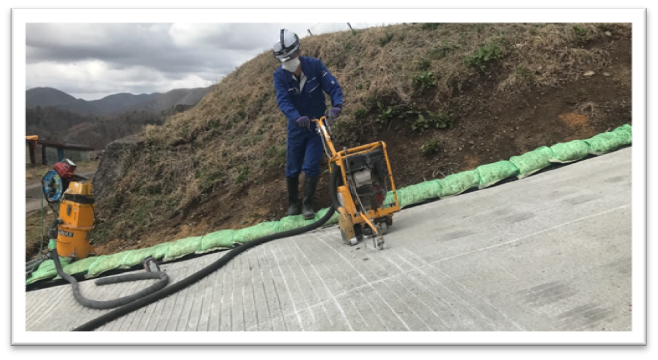 坂道での横グルービング工事